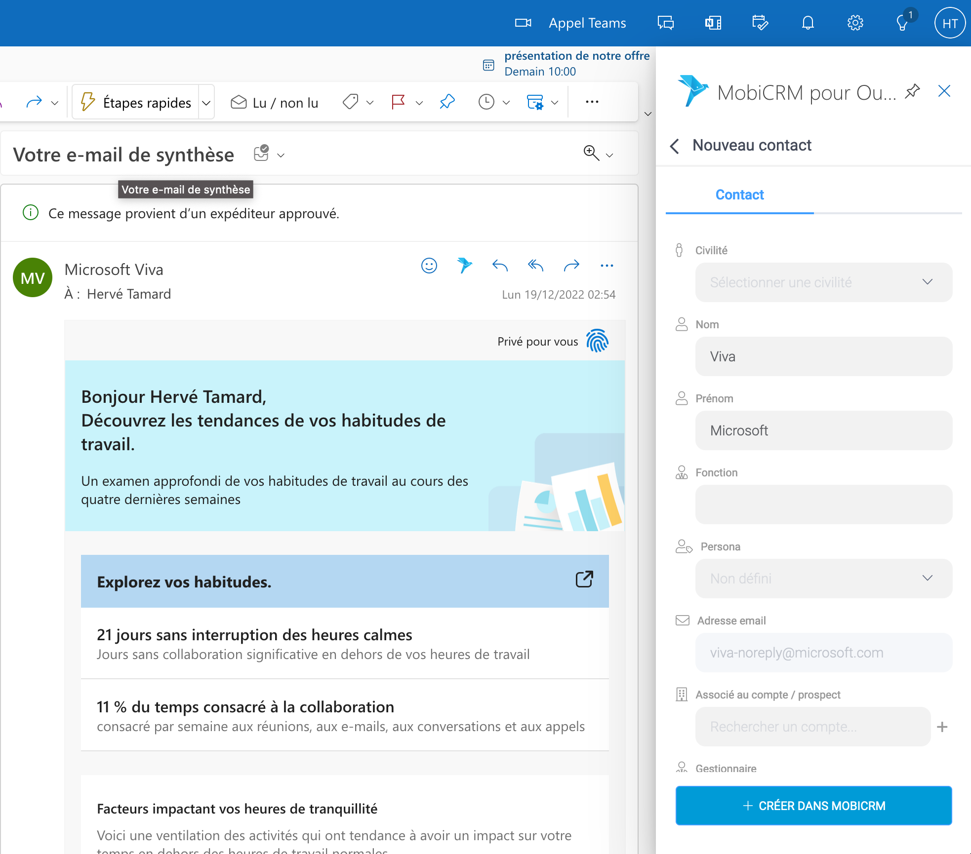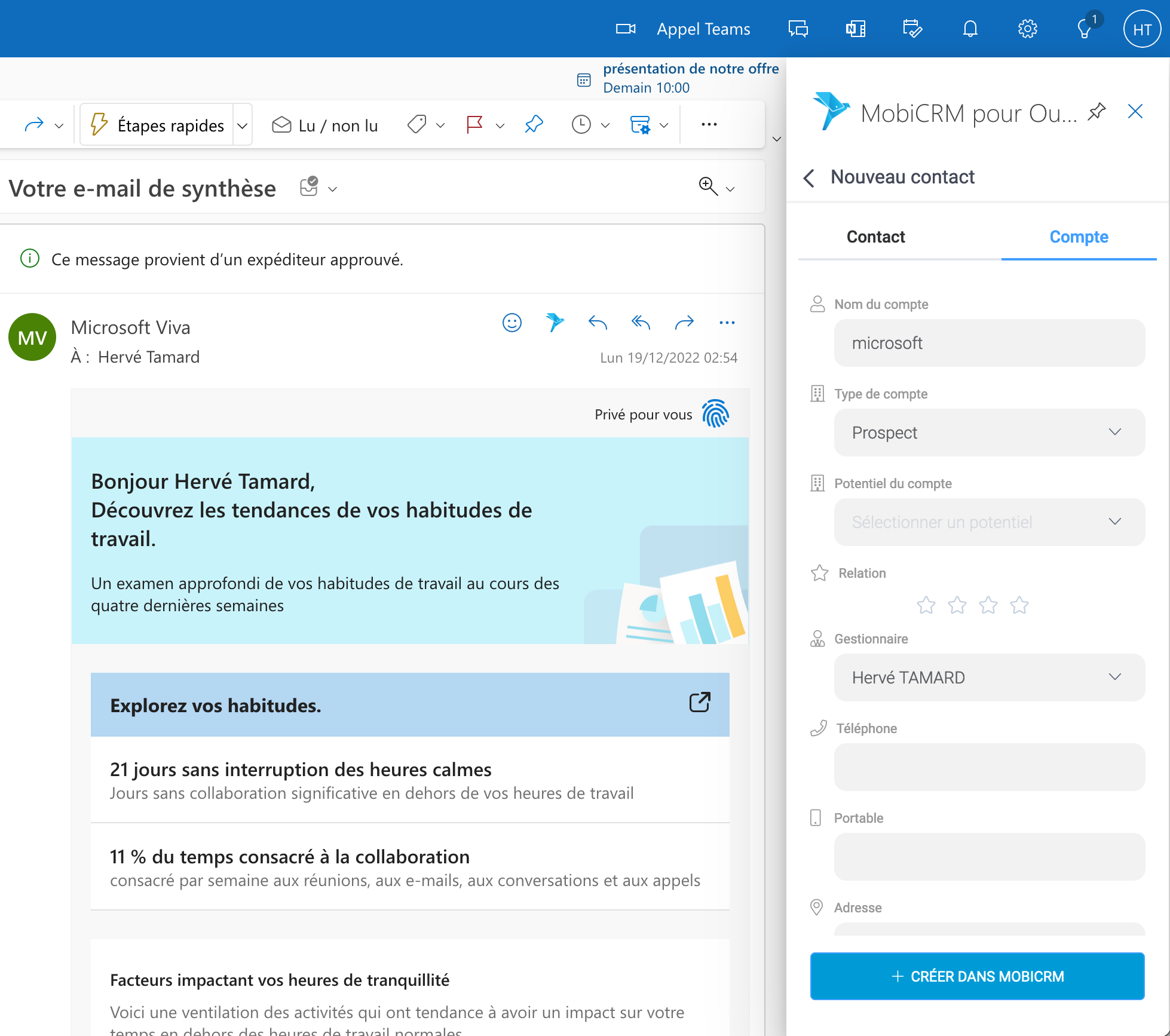 MobiCRM pour Outlook - Fonctionnement