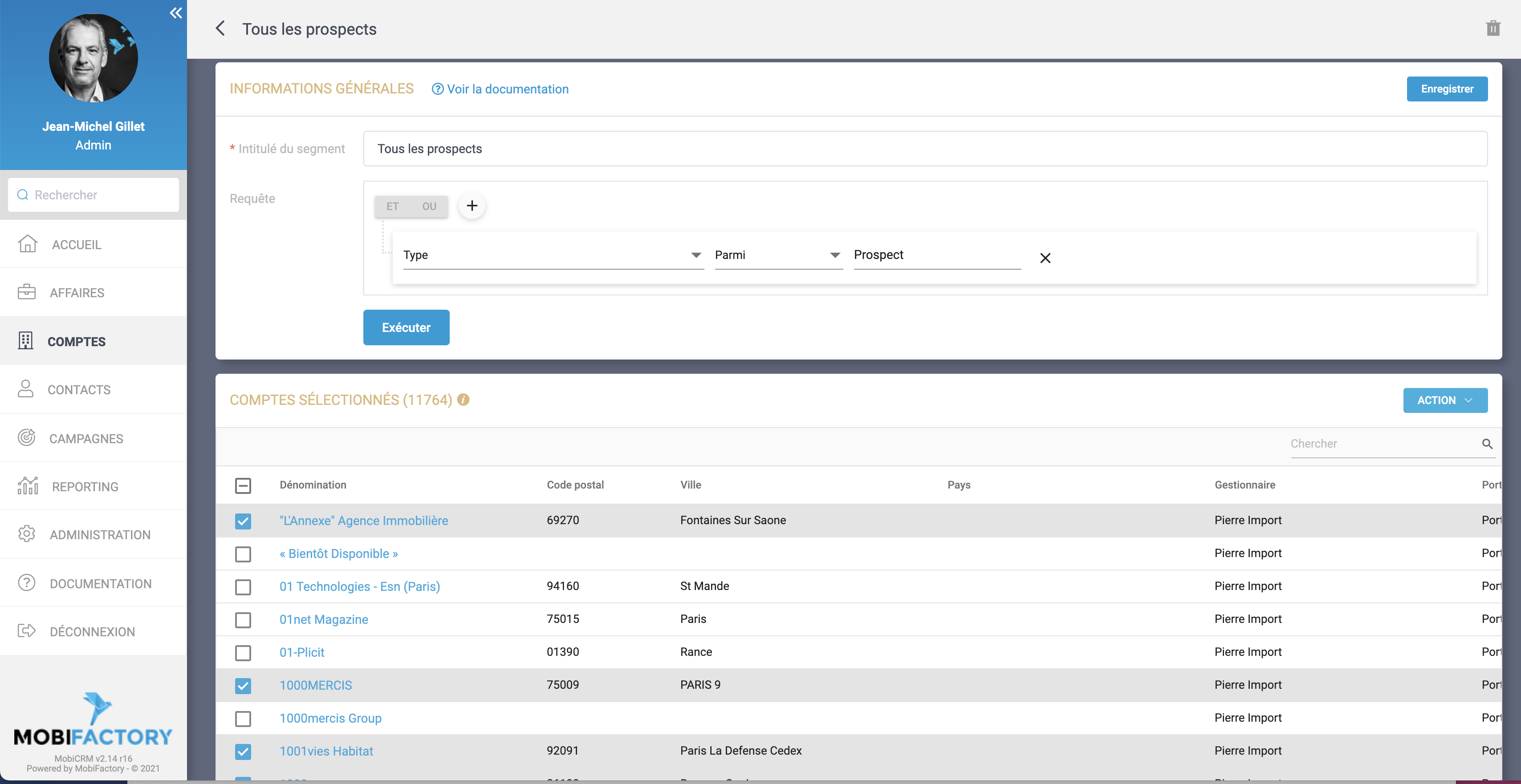 Désormais dans la segmentation, vous pouvez affiner votre sélection en agissant directement sur le résultat de la requête. Il suffit de cocher/décocher les lignes qui vous intéressent.