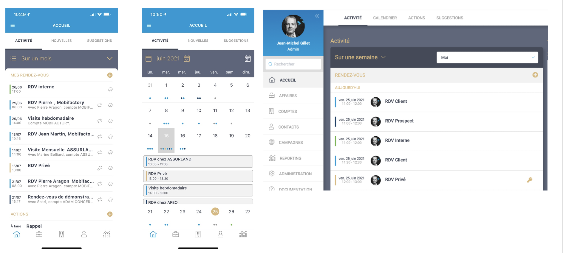 Les codes couleurs sont repris sur tous les rendez-vous, smartphone et web.