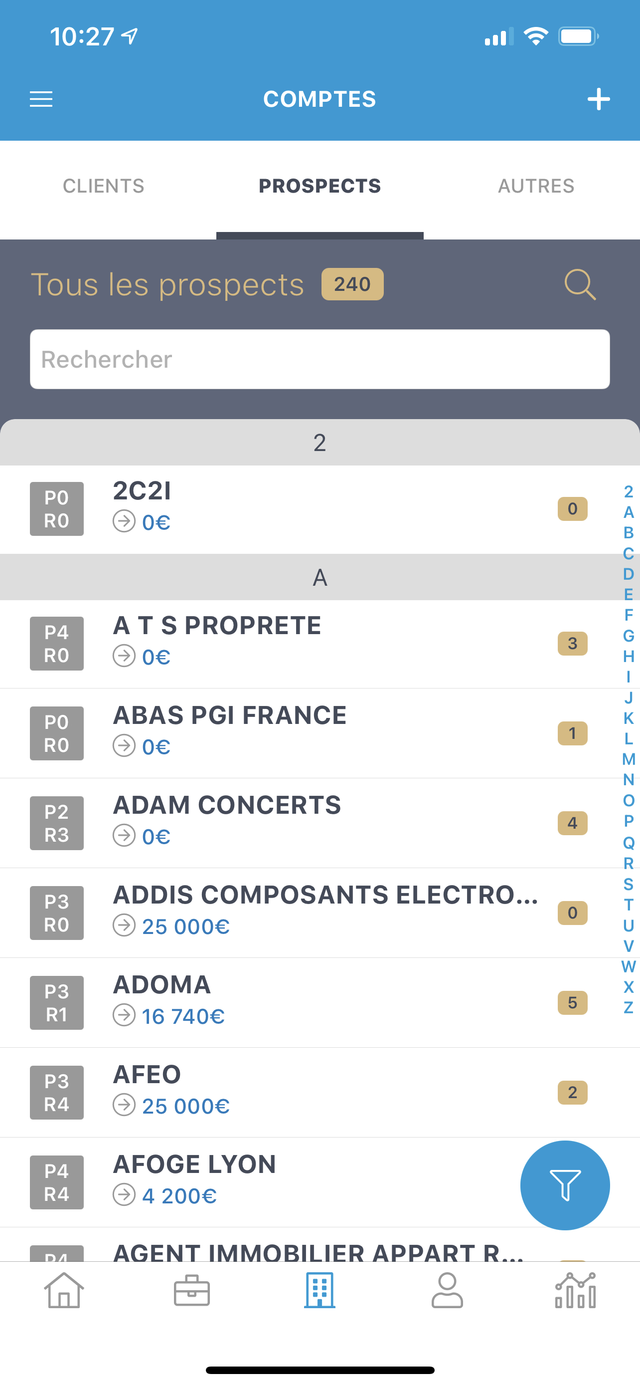 Smartphone: La recherche directe dans les comptes, les contacts, les affaires