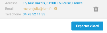 Il est possible d'exporter un contact dans un fichier au format VCARD.