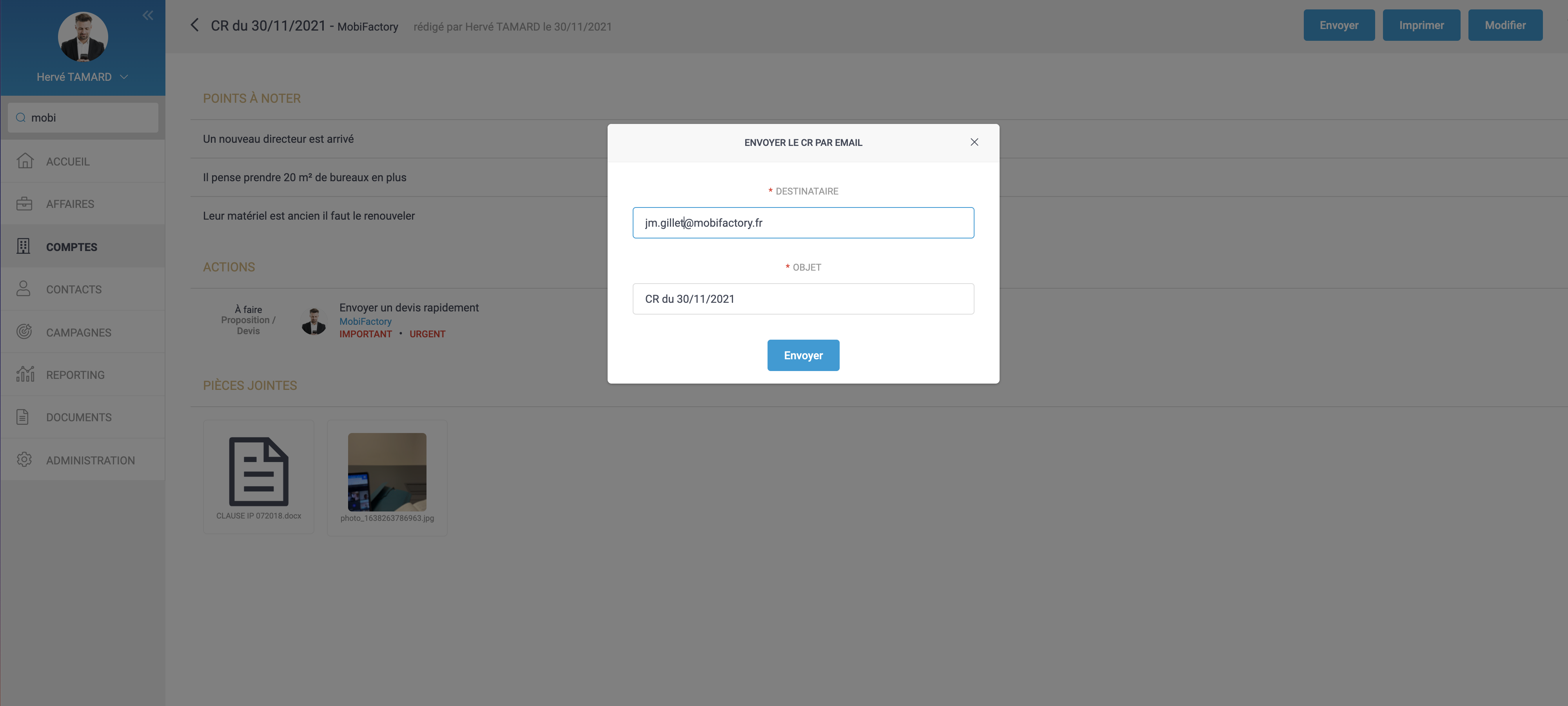 Vous pouvez aujourd’hui envoyer vos comptes-rendus par email.