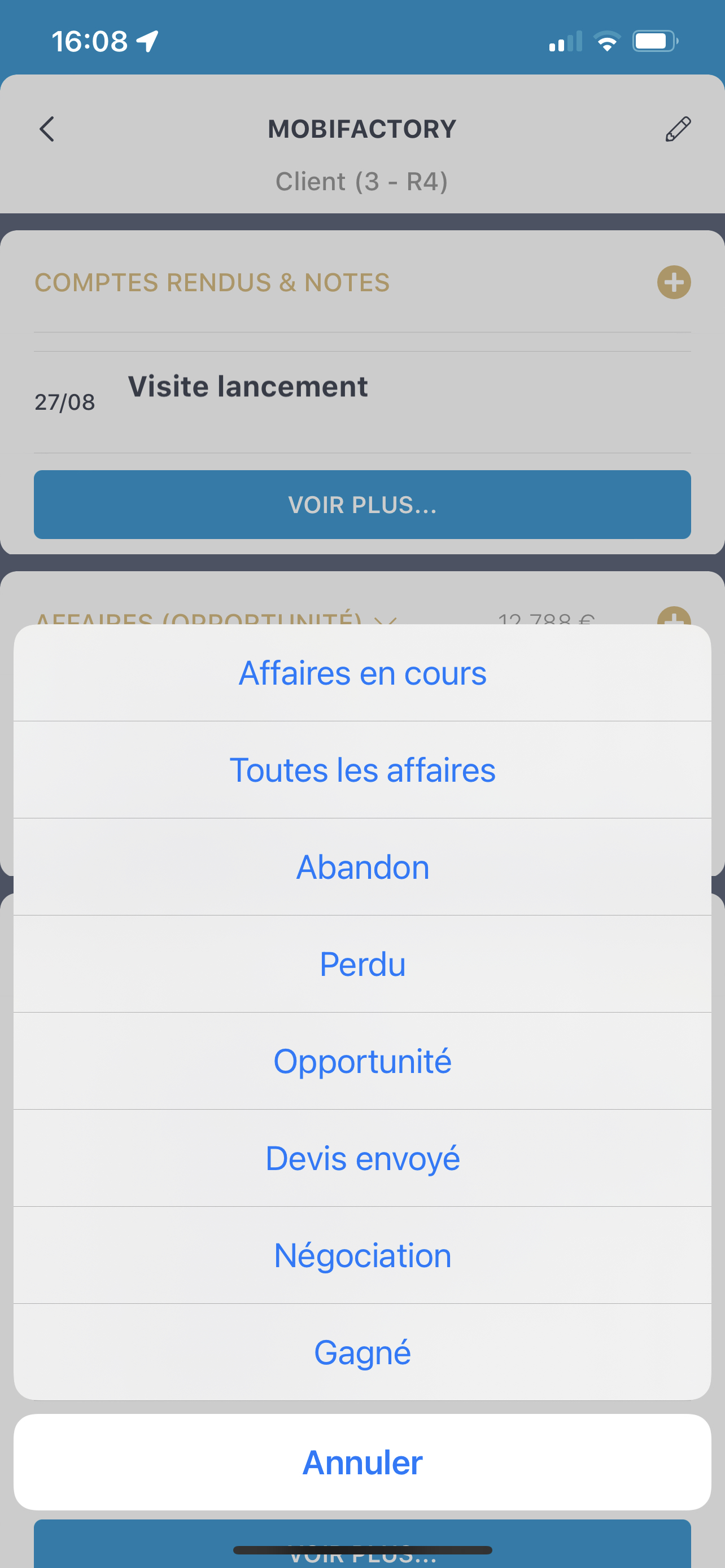 Smartphone - 360 client : nouveaux filtres sur les affaires