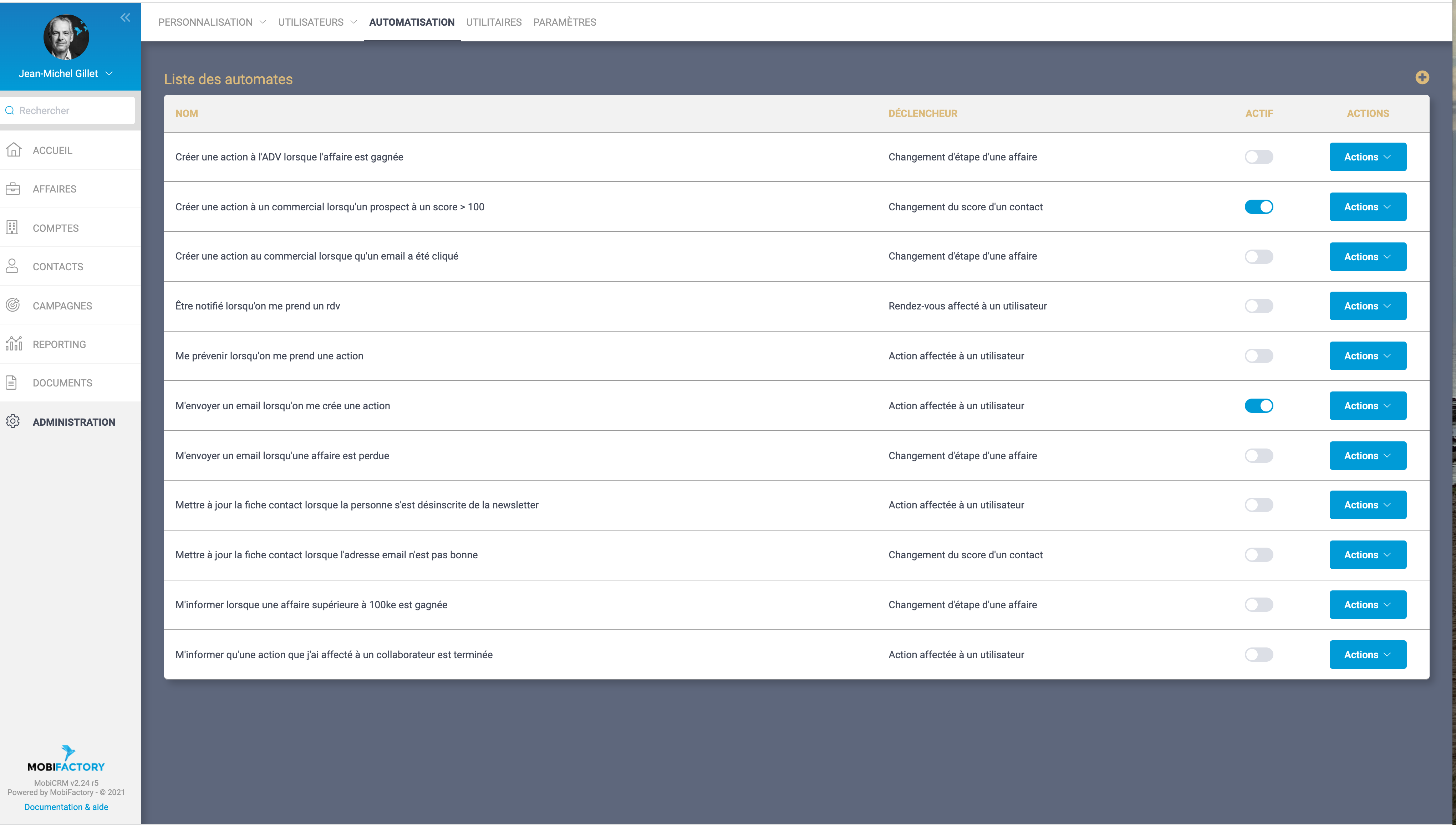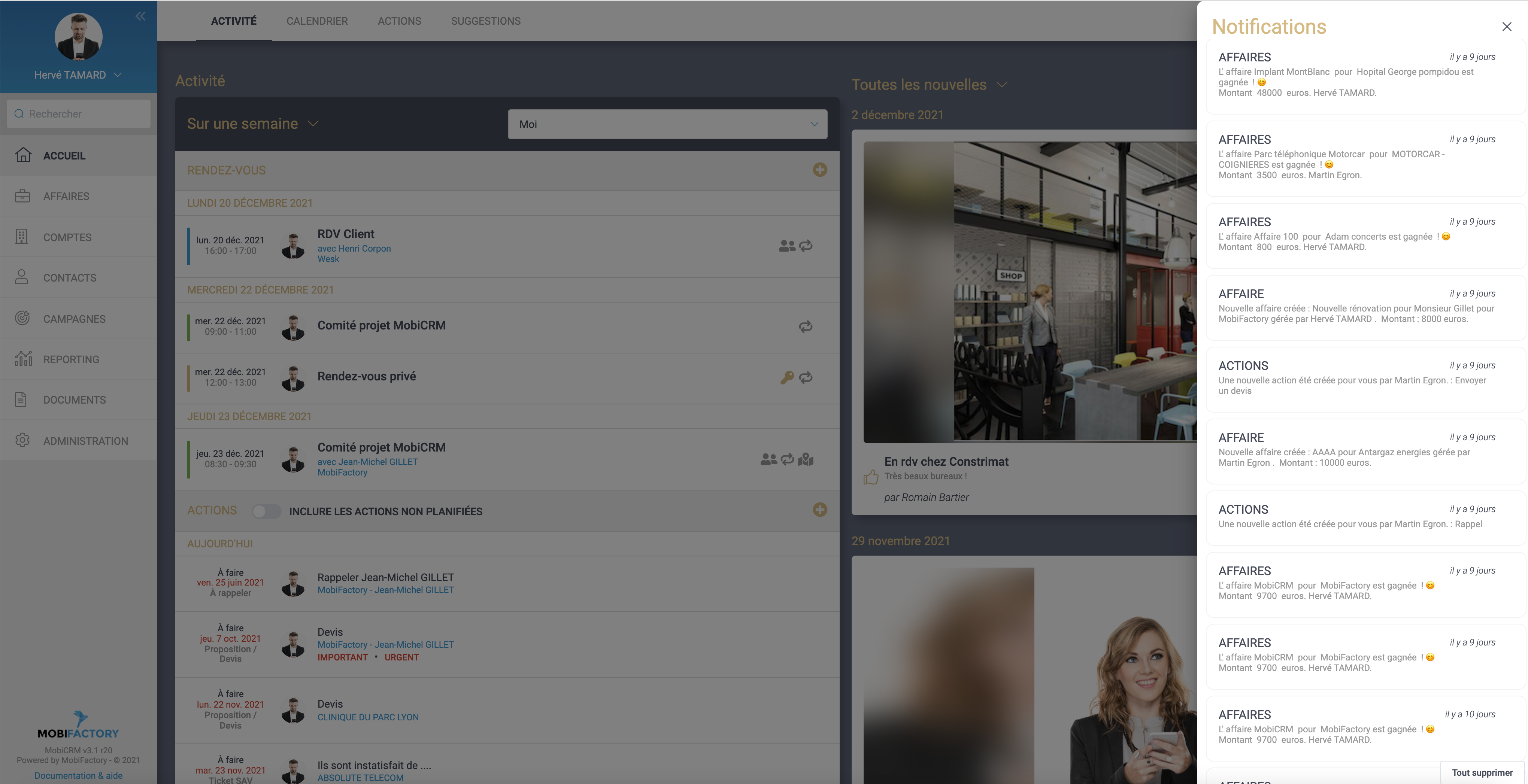 • Qu’une affaire a été gagnée, perdue, en fonction de son montant. … Par email ou par notification smartphone / web