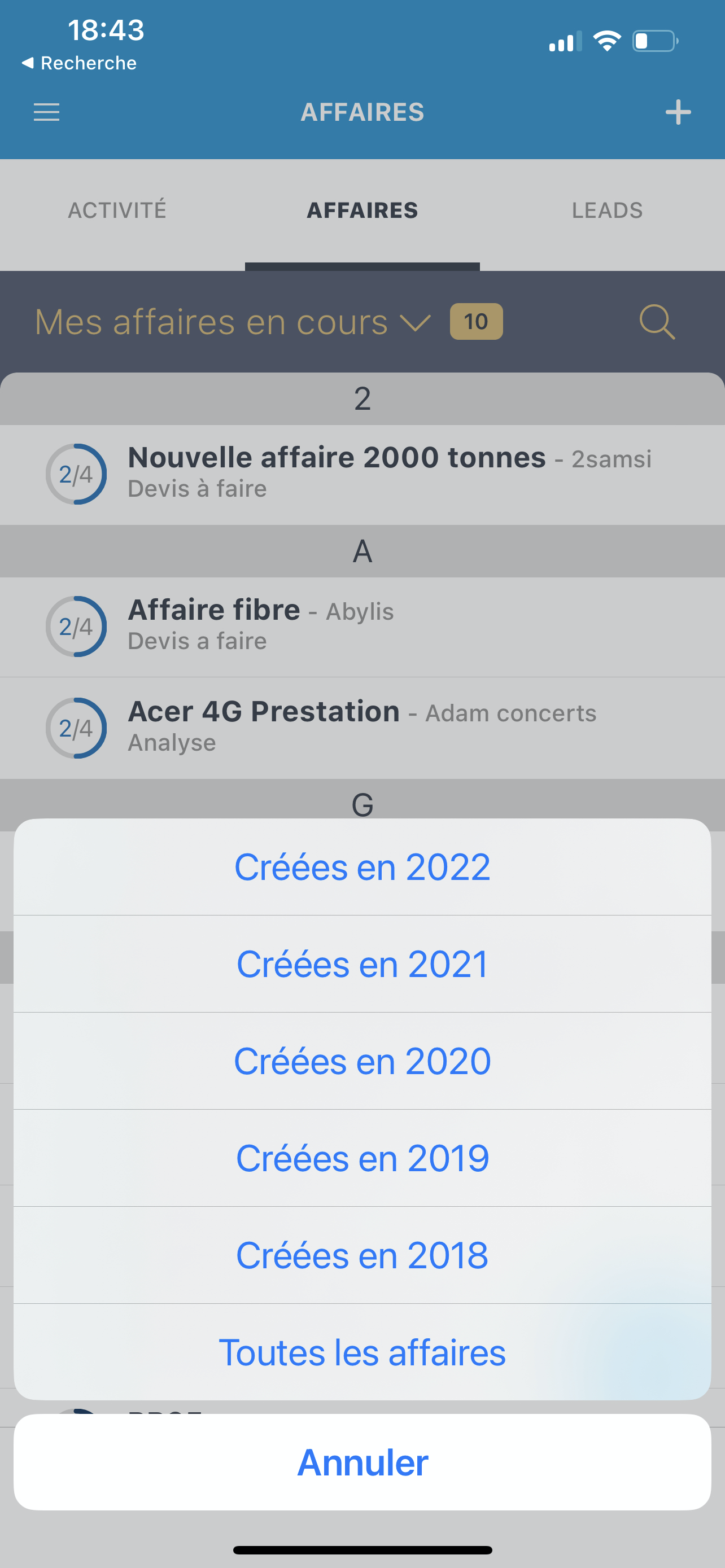 Un nouveau filtre sur le smartphone vous permet de voir les affaires années par années.