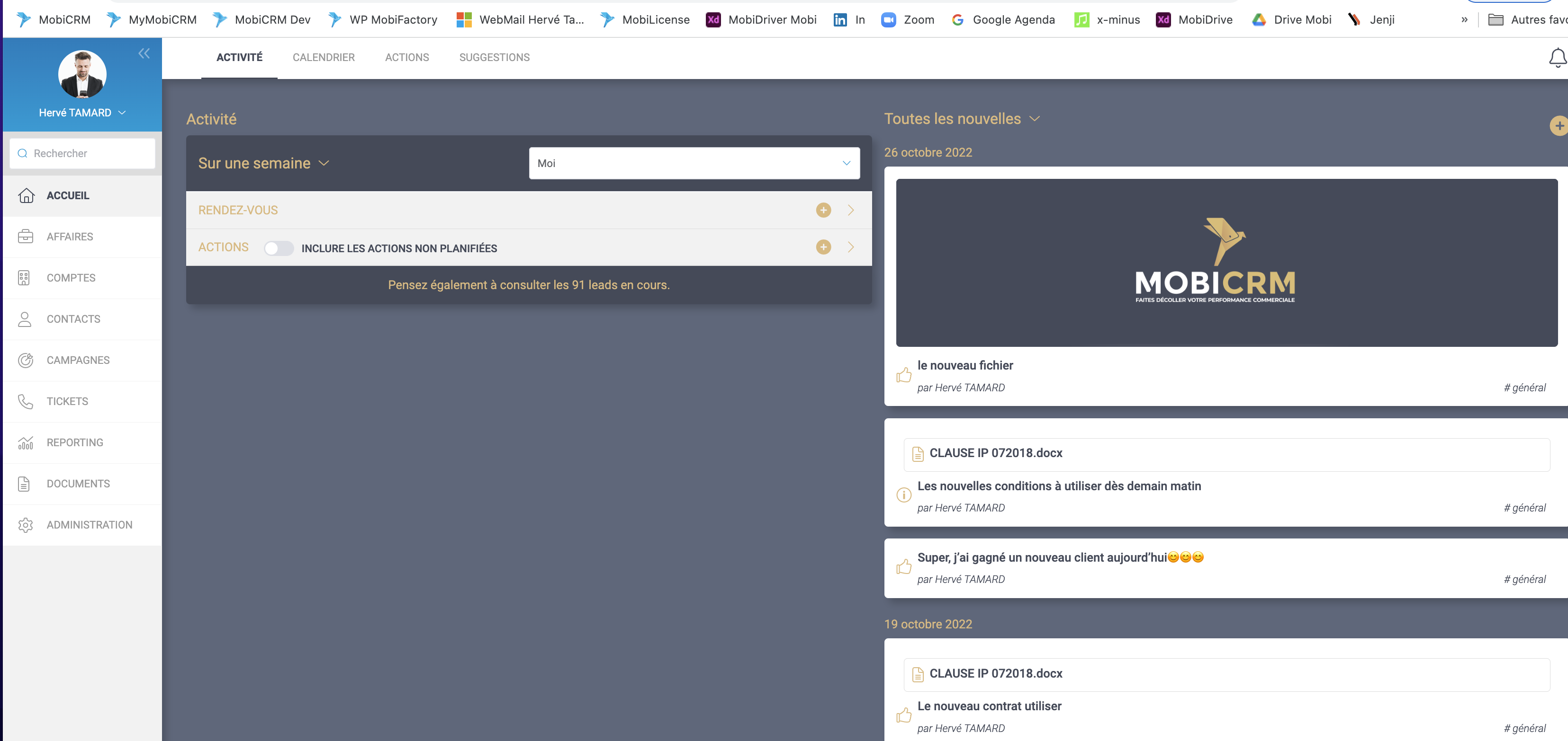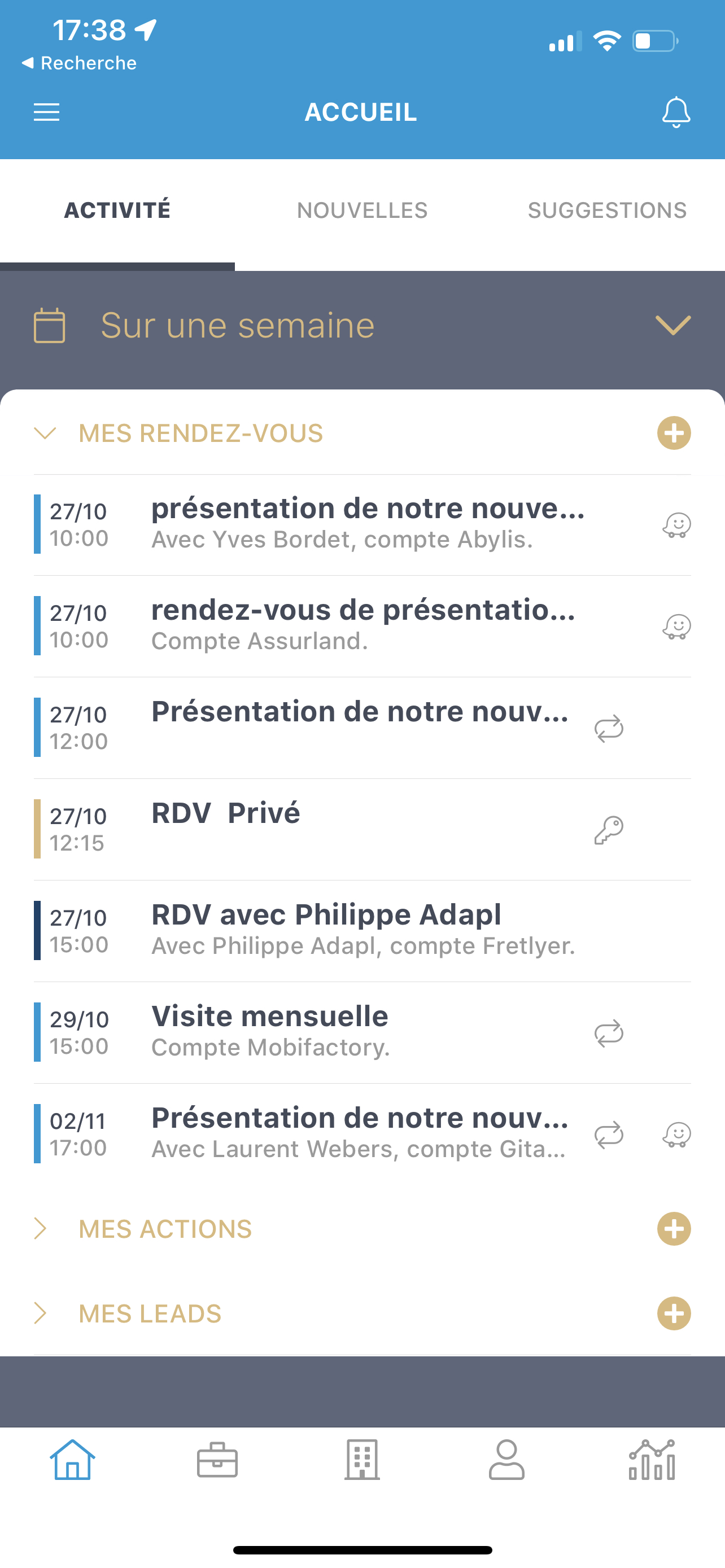 Vous pouvez dorénavant plier/déplier l’affichage des rdv, actions et leads sur la page d’accueil du smartphone, afin de gagner en lisibilité.