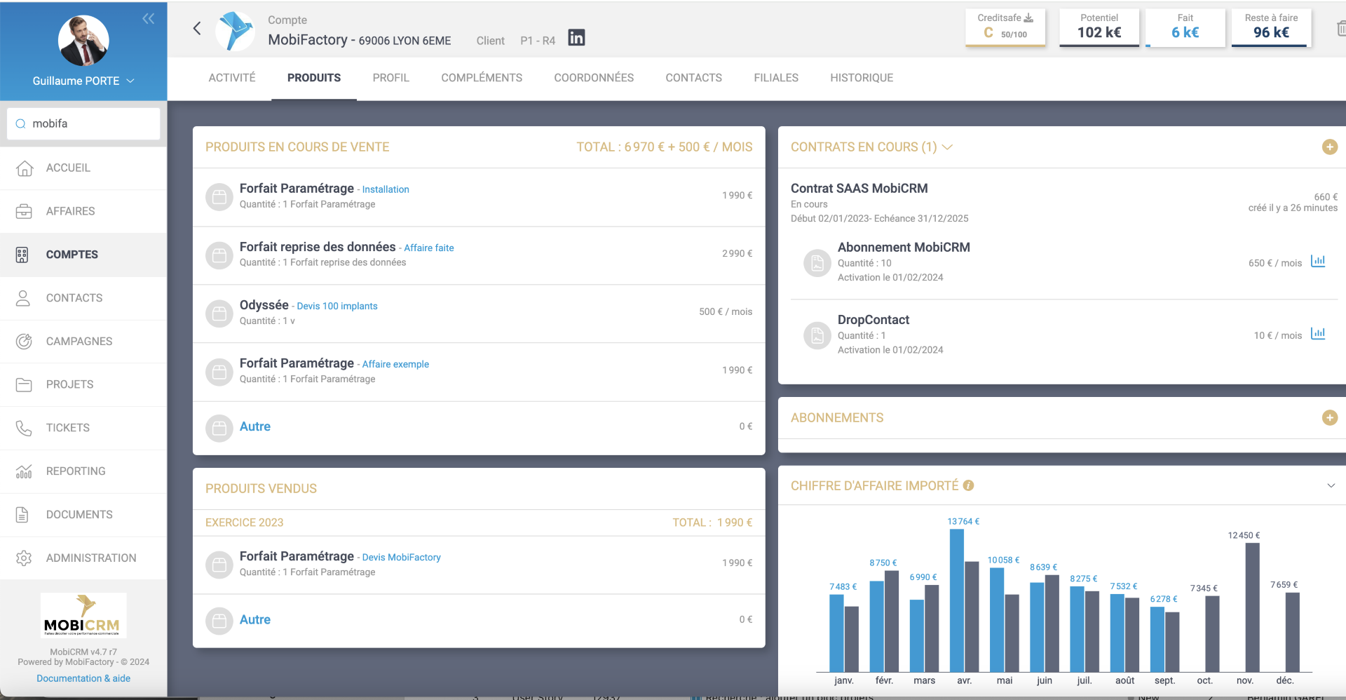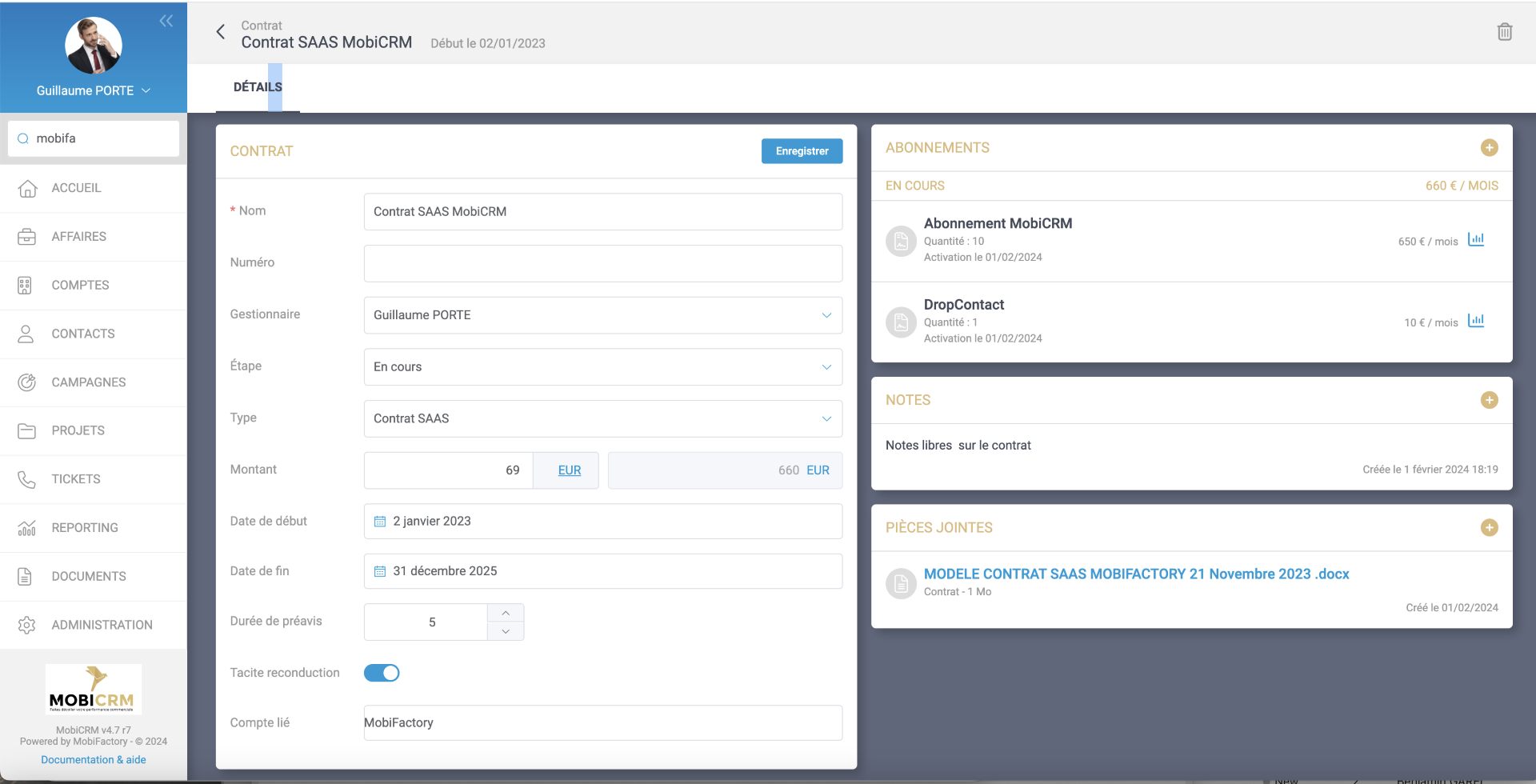 - D’enregistrer tous vos contrats sur les clients dans votre MobiCRM.