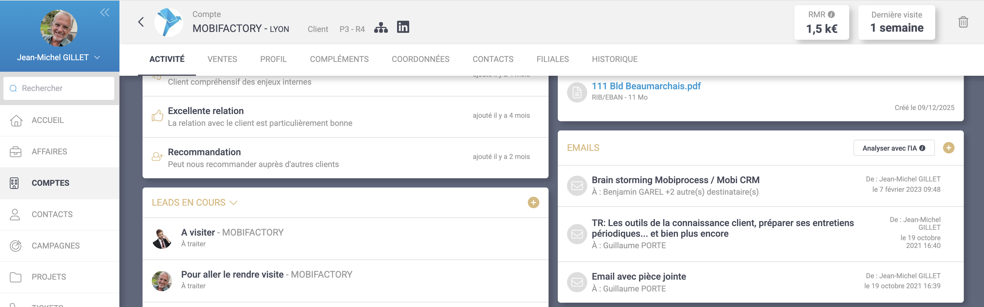 • Ajout d’un indicateur de date de dernière/prochaine visite dans l’en-tête de la fiche client (web et mobile).