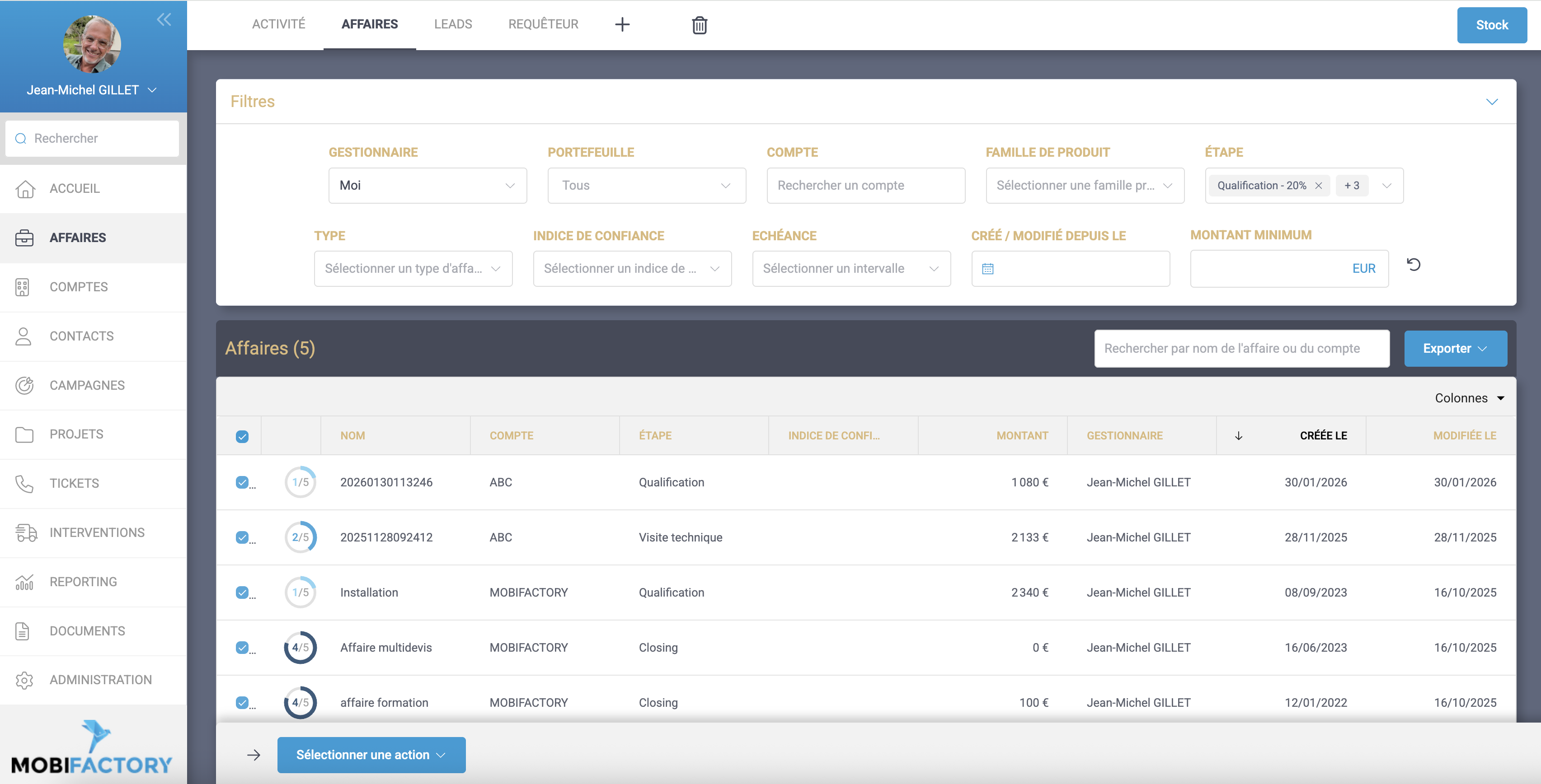 Ajout d’actions groupées permettant de modifier en masse les étapes d’une affaire.