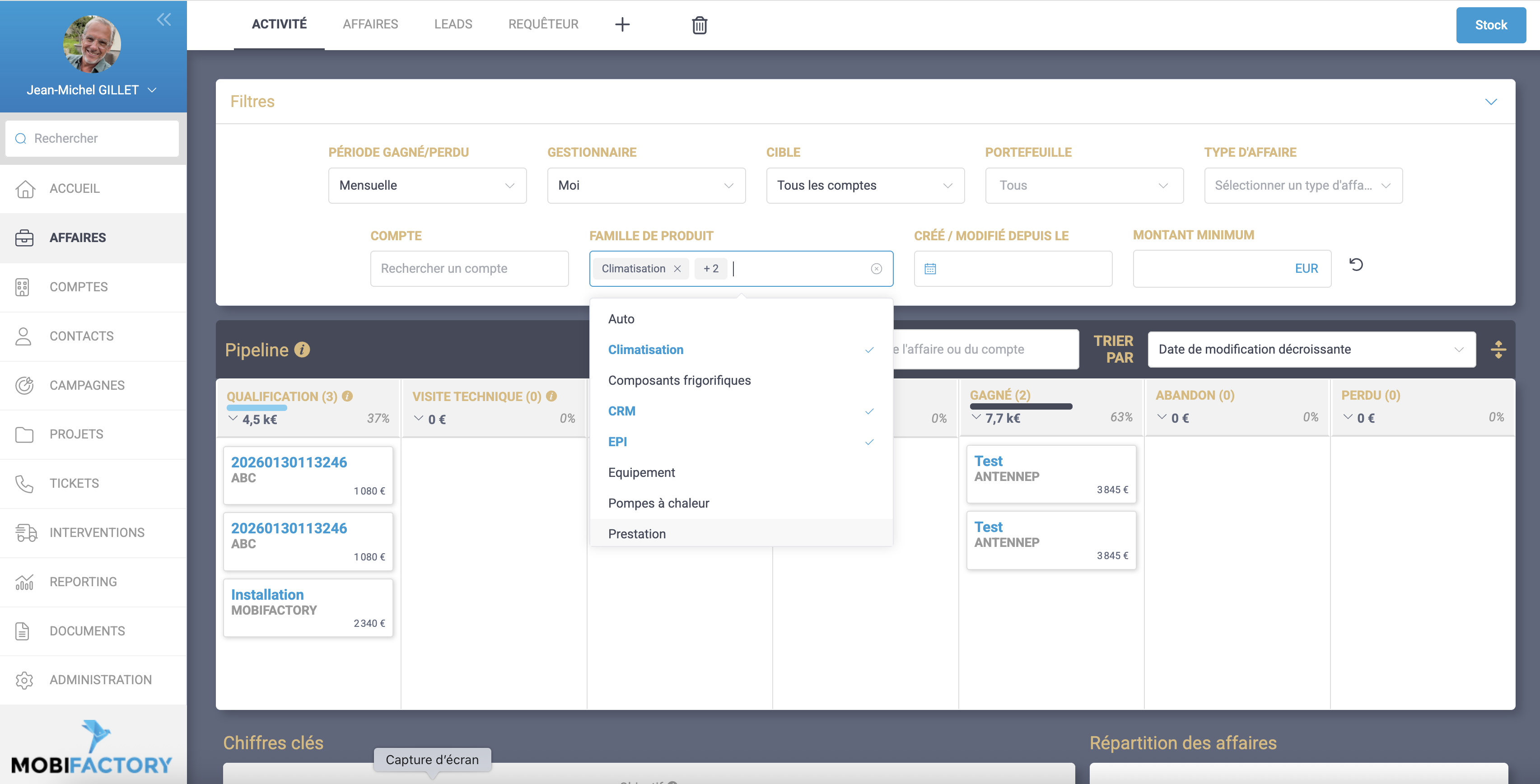 • Points commerciaux : ajout d’un camembert sur les types d’actions pour une meilleure visualisation de votre activité.