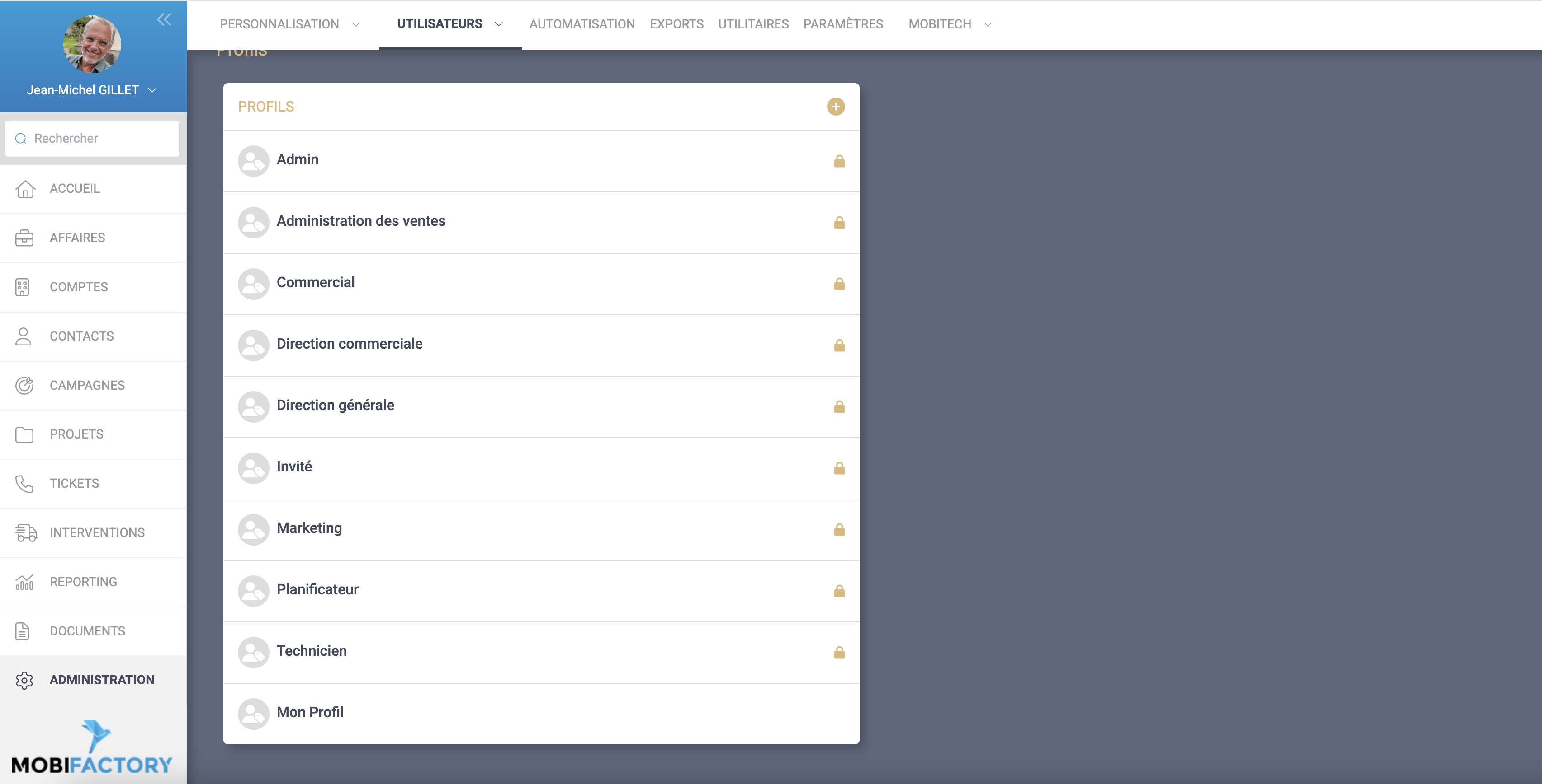 Possibilité de créer des profils personnalisés, en plus des profils standards proposés, en appuyant sur la touche +
