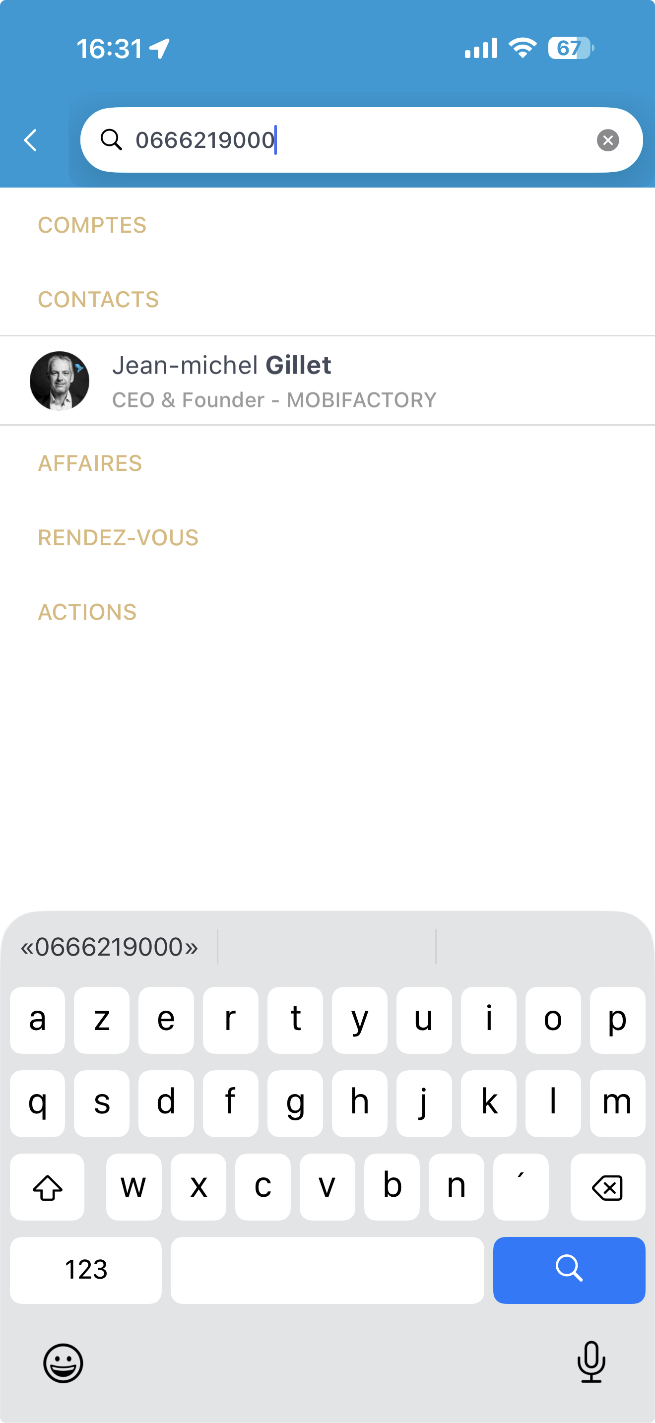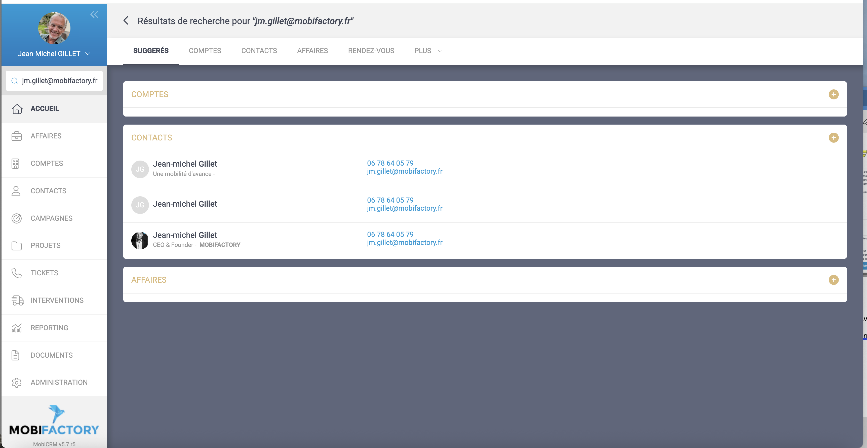Mise en place de MobiSearch, un moteur de recherche avancé permettant de rechercher sur de nombreux critères : Numéro de téléphone, de portable, ville, code postal, référence interne, SIRET / SIREN, Adresse email, recherche avec ou sans accent…